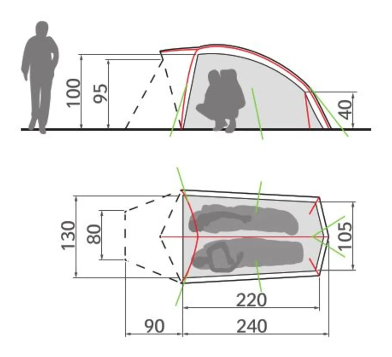Innenzelt: 100% Polyamid 40 D Ripstop