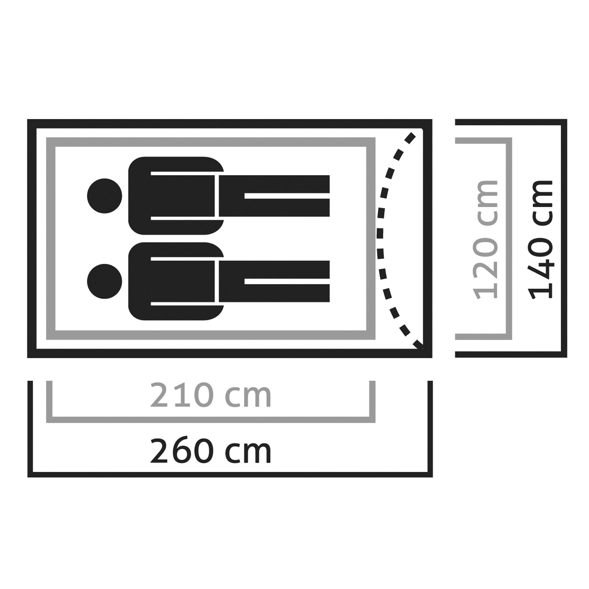 - Außen 260 x 140 x 110 cm